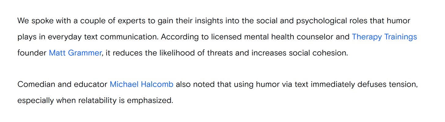 Running a daily blog can be quite the challenge. Sometimes I don’t feel like writing on others it’s nearly impossible to make it happen. But I work hard to stay consistent with it. And it’s cool when people notice and and it pays off. Through my writing, I’ve been able to make some great connections and land some cool opportunities. One of those just went live with BoredPanda.com and AOL.com. I was interviewed about using humor in text messages, which can be risky at times, but also downright hilarious. In addition to a few screenshots below, you can read the full interview on BoredPanda.com HERE or on AOL.com HERE and see some hilarious text messages.